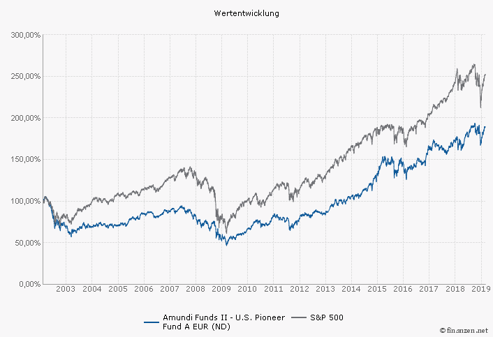 Und im Performancevergleich seit 2001 schlägt der S&P 500 Index den Fonds um Längen…