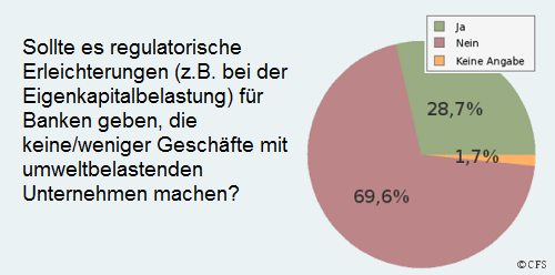 „Die Bankenregulierung sollte nicht mit klimapolitischen Zielen überfrachtet werden. Zum einen ist die Regulierungsdichte im Finanzsektor ohnehin schon sehr hoch. Zum anderen können Kapitalerleichterungen für umweltfreundliche Finanzierungen zu Fehlanreizen führen, die die Finanzstabilität gefährden“, kommentiert Dr. Volker Brühl, Geschäftsführer des Center for Financial Studies, die Umfrageergebnisse.
