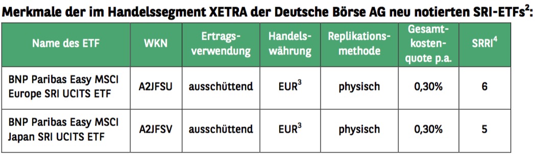 BNP Paribas Asset Management hat am 17. April 2018 zwei neue ETFs an der Börse platziert. Private und institutionelle Anleger können mit diesen über ein passives Investmentvehikel nachhaltig am europäischen und japanischen Aktienmarkt investieren.