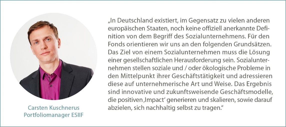 Was ist das Ziel von Impact-Unternehmen, welche übrigens auch als Sozialunternehmen bezeichnet werden, und was zeichnet sie aus? Das beantwortet Carsten Kuschnerus, Portfoliomanager des ESIIF: