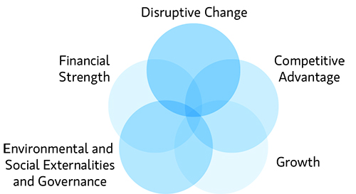 A holistic approach to sustainability — with respect to disruptive change, financial strength, environmental and social externalities and governance (also referred to as ESG) — helps us identify investment opportunities.