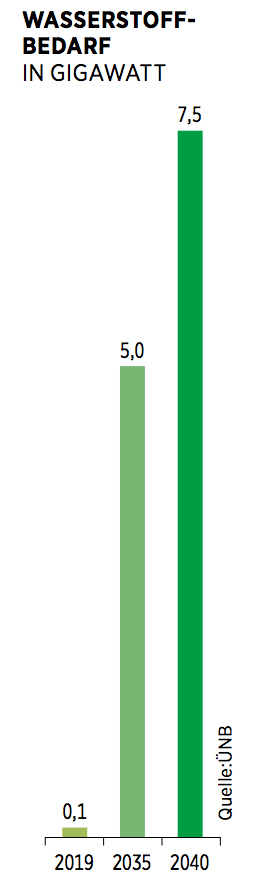 Dennoch scharren auch im Ausland die Akteure schon mit den Hufen. Um seine Gasleitung Nordstream attraktiver zu machen, so ist aus der Branche zu hören, lockt Russlands Präsident Wladimir Putin die Europäer mit der Aussicht auf Wasserstoff statt auf Erdgas. Gasriese Gazprom testet bereits Verfahren, um den fossilen Rohstoff in Wasserstoff umzuwandeln.