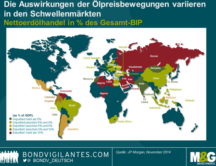 Eine große Zahl an Schwellenländern profitiert direkt von niedrigen Ölpreisen.