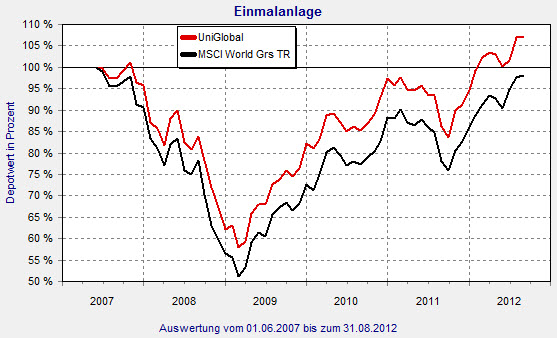 Kramert tritt kein leichtes Erbe an: Nachdem der Fonds im Zuge der internationalen Finanzkrise zwischen 2007 und 2009 fast 50 Prozent seines Wertes eingebüßt hat, erreichte Kramer in den vergangenen drei Jahren eine Wertsteigerung von 45,09 Prozent. Die Krise hat allerdings seine persönliche Bilanz stark beeinträchtigt. Insgesamt kommt er nur auf ein Plus von 10,08 Prozent in den fünf Jahren seiner Verantwortung. Performance und Risikoverhalten nach 2009 sind allerdings so stark, dass der 7,26 Milliarden Euro starke UniGlobal die €uro-Fonds-Note 2 trägt. Für das laufende Jahr steht bisher ein Plus von 13,47 Prozent. Im Zeitraum von fünf Jahren weist der Fonds eine Volatilität von 15,38 Prozent auf und liegt damit nur im Mittelfeld der Assetklasse „Aktienfonds international“. Die Sharpe Ratio von 0,01 ist eine der wenigen positiven Sharpe Ratios der Peergroup. Auf Länderebene legte Köttner bisher einen Schwerpunkt auf die Vereinigten Staaten. Hier investiert er 46,2 Prozent des Fondsvolumens (Stand: 31. Juli 2012). Großbritannien und die Schweiz folgen mit 9,4 bzw. 6,8 Prozent dahinter. In der Branchenallokation ist der IT-Sektor mit 17,3 Prozent am stärksten vertreten. Finanz- und Gesundheitswesen liegen mit 13,9 und 12,4 Prozent an zweiter und dritter Stelle. Die größten Einzeltitel des UniGlobal sind die US-amerikanischen Software-Giganten Apple (2,7 Prozent), Google (2,3 Prozent) und Microsoft (2,3 Prozent).