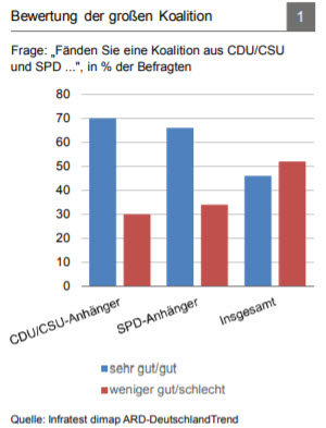 Derzeit überwiegt die Erleichterung darüber, dass Deutschland wieder eine „ordentliche“Regierung hat. Allerdings könnten sich wohl nicht nur die Koalitionäre bald fragen, ob der Preis nicht doch zu hoch war. Spekulationen über ein vorzeitiges Ende der Groko haben ja bereits begonnen, insbesondere da die Partner frühzeitig ihre Positionierung für die post-Merkel Zeit vorantreiben dürften. Sollbruchstellen gibt es jedenfalls genug.