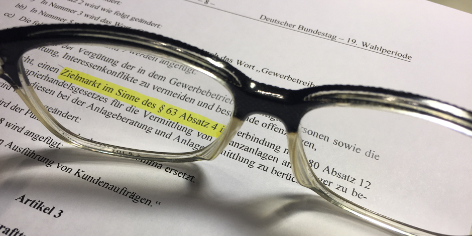 Wenn es um Gesetzgebung geht, können kleine Änderungen in der Satzstellung, die Streichung eines Wortes oder eine leicht geänderte Formulierung in einem Paragrafen manchmal große Wirkung entfalten. So geschehen am Freitag, als der Bundestag in der entscheidenden Lesung zur neuen Verordnung über Finanzanlagenvermittlung, kurz FinVermV genannt, beriet. Was Finanzanlagenvermittler mit einer Erlaubnis nach Paragraf 34f Gewerbeordnung (GewO) besonders freuen dürfte: In Zukunft haben sie nun „die Pflicht, sich die erforderlichen Informationen über die jeweilige Finanzanlage einschließlich des für diese bestimmten Zielmarktes im Sinne des § 63 Absatz 4 in Verbindung mit § 80 Absatz 12 des Wertpapierhandelsgesetzes zu beschaffen und diese bei der Anlageberatung und Anlagevermittlung zu berücksichtigen“.