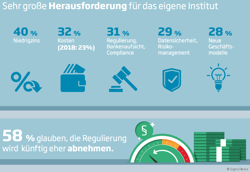 "Statt auf Deregulierung zu hoffen, kommt es für die Banken 2020 und in den Folgejahren darauf an, ihre internen Regelwerke effizient und auf ihre jeweiligen Geschäftsmodelle sowie die Aufbau- und Ablauforganisation auszurichten", rät Dr. Ingo Schäl, Experte für Bankenregulierung bei Sopra Steria. Dazu gehört beispielsweise ein bis auf das Einzelgeschäft heruntergebrochener Datenhaushalt für flexible und wechselnde Reporting-Anforderungen. Zudem sollten Institute Prozesse und IT so gestalten, dass die Institute nicht bei jeder neuen Regulierungsvorschrift einen komplett neuen Rahmen schaffen müssen.