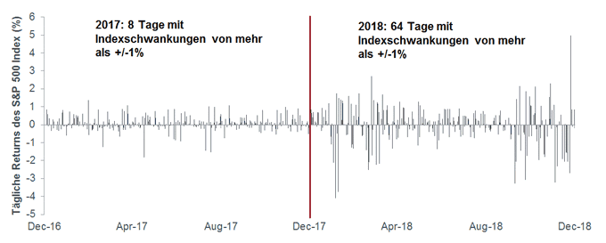 Quelle: Thomson Reuters Datastream, S&P 500 Kursindex, 31. Dezember 2016 bis 31. Dezember 2018. Die Wertentwicklung in der Vergangenheit ist kein zuverlässiger Indikator für die künftige Wertentwicklung.