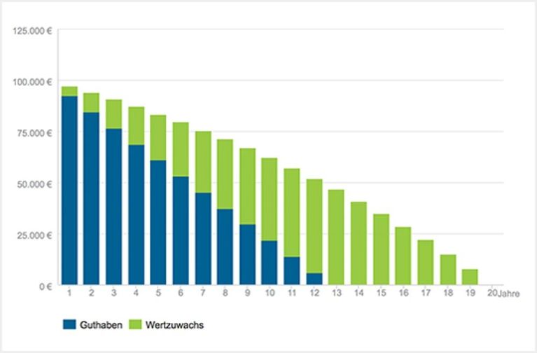 einem Entnahmeplan einer negativen Verzinsung von 4,7 Prozent. Um sein