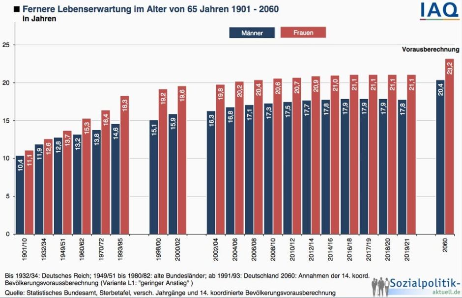 Lebenserwartung seine Rente 16,8 Jahre lang erhält, entspricht dies gemessen an