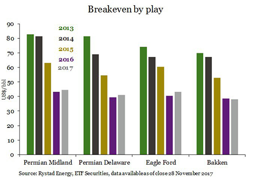 We expect the oil price to remain in a range from US$45 to US$60/bbl for 2018, although a significant geopolitical upset in the Middle East could cause temporary price spikes.