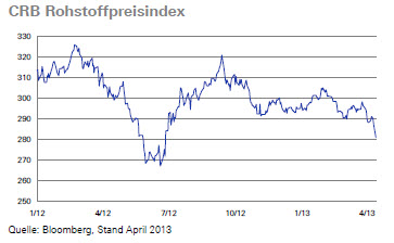 dass die enttäuschenden Konjunkturdaten im März aus den USA und aus Europa überwiegend eine Folge des Kälteeinbruchs sind und es daher zu einer Verbesserung der Datenlage im April und Mai kommt. Die Rohstoffpreisentwicklung widerspricht offensichtlich dem Basisszenario.