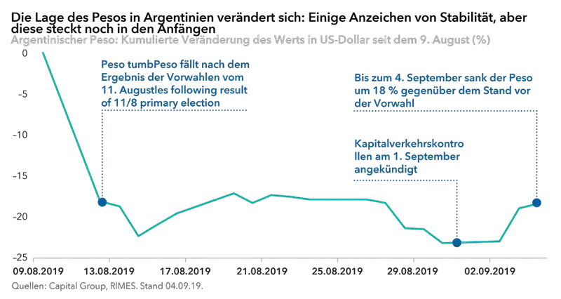 Die Anleihen-, Aktien- und Devisenmärkte wurden im August hart getroffen, aber ich denke, dass Kapitalverkehrskontrollen eine gute Chance haben, kurzfristig Stabilität zu bringen. Obwohl wir uns noch in einer frühen Phase befinden, hat der Peso etwas zugelegt, da der unmittelbare Druck auf ihn gemildert wurde.