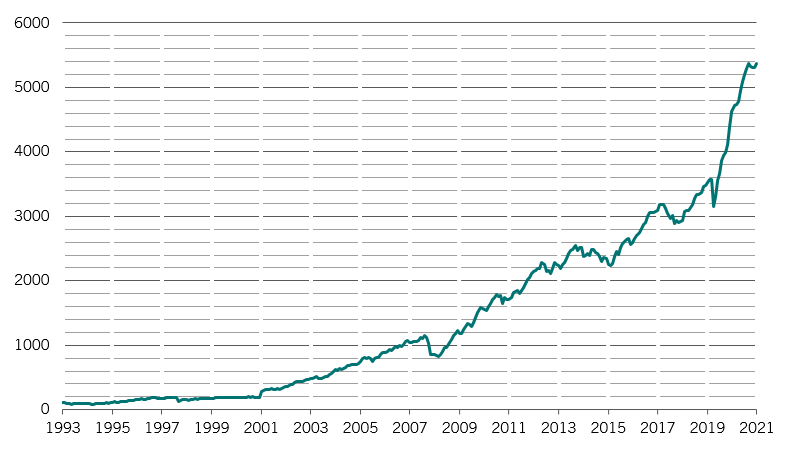Die wirtschaftlichen Verbindungen zwischen China und dem übrigen Schwellenländeruniversum sind natürlich stark, dürfen aber nicht überbewertet werden. Beispielsweise ist die Europäische Union insgesamt ein grösserer Handelspartner für die Schwellenländer als China. Auf die EU entfallen 21,3% des gesamten Exportvolumens der Schwellenländer, auf China nur 18,8%.1 Gleichzeitig stellen die EU und das Vereinigte Königreich 52% des Kapitals für die Schwellenländer bereit.