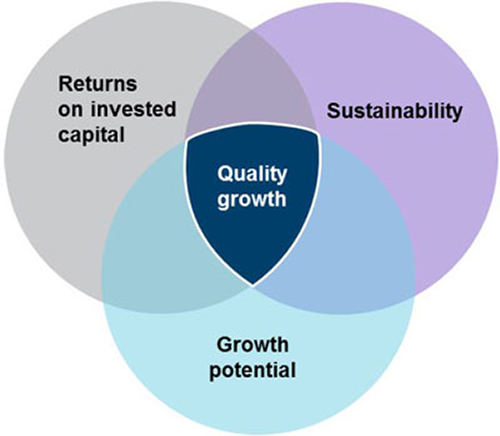 Die übergreifende Strategie basiert auf dem Aufbau eines Portfolios mit einer einheitlichen Philosophie. Im Rahmen unserer Branchen- und Geschäftsmodellanalysen prüfen wir die potenziellen Anlagekandidaten auf Herz und Nieren. Zum Beispiel die Kapitalrendite: Wie sieht das Margenprofil aus, wie volatil sind die Cashflows, wie viel Liquidität sollte reinvestiert werden, um das Wachstumspotenzial zu realisieren? Oder die Nachhaltigkeit: Wie nachhaltig profitabel ist das Unternehmen, wie wird sich seine Wettbewerbsposition entwickeln, besteht ein Risiko durch neue, disruptive Geschäftsmodelle? Und das Wachstumspotenzial: Ist das Unternehmen in der Lage, langfristig zu wachsen und seinen Unternehmenswert zu erhöhen? Glauben wir, dass es in fünf oder zehn Jahren größer sein wird als heute? Wie gesättigt ist der Markt?