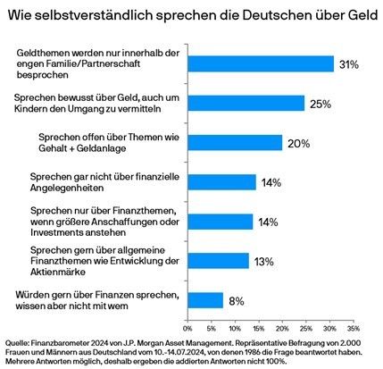 31 Prozent der Befragten besprechen Geldthemen vor allem innerhalb der Familie, während 25 Prozent dies regelmäßig tun, um den Umgang mit Geld weiterzugeben.