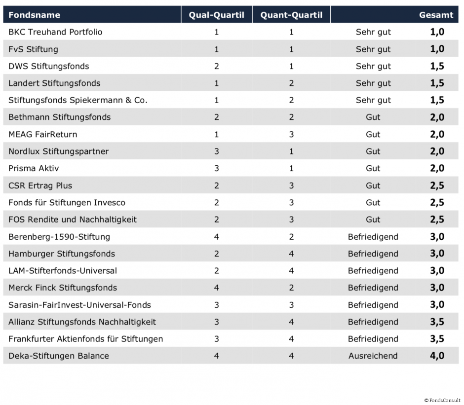 Für Stiftungen sind objektive und analytisch scharfe Entscheidungshilfen bei der Suche nach passenden Stiftungsfonds deshalb enorm wichtig. Dazu zählt auch die jährlich erscheinende Stiftungsfonds-Studie der Münchner Beratungsgesellschaft FondsConsult Research. Die aktuelle, vor kurzem erschienene Studie zeigt, welche Fonds sich im vergangenen Jahr in einem extrem schwierigen Kapitalmarktumfeld gut behaupten konnten - und welchen Fonds dies weniger gelang.