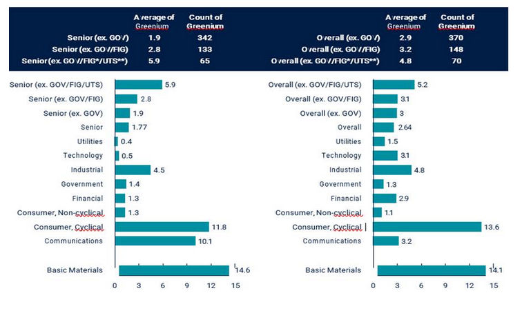 Die neueste Untersuchung des französischen Investmenthauses Mirova stellt fest, dass das Greenium zuletzt über den gesamten Markt hinweg zurückgegangen ist. Mitte März betrug es 2,64 Basispunkte. „Wir gehen davon aus, dass das Greenium im Verlauf des Jahres weiter fallen wird, auf einen Durchschnittswert von ca. zwei Basispunkten“, sagte Nelson Ribeirinho, Senior Credit Analyst und einer der Autoren der Studie. Gleichzeitig wies er darauf hin, dass der Abschlag je nach Branche und Bondsegment unterschiedlich ausfallen könne. Im Bereich der zyklischen Konsumgüter etwa machte der Renditeabschlag zuletzt über 13 Basispunkte aus.