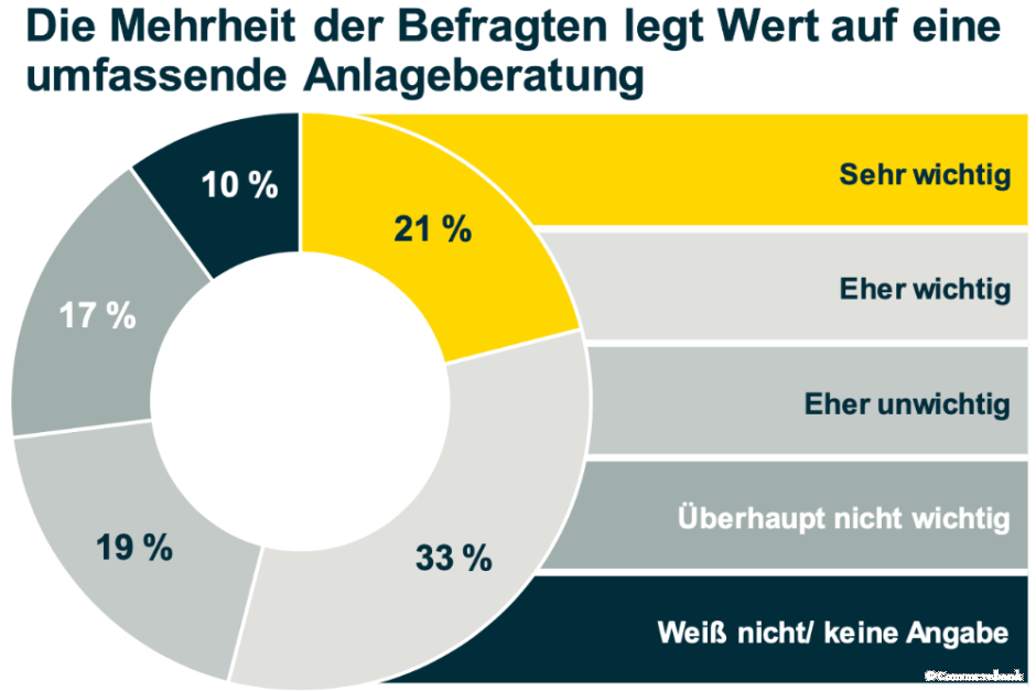 Zwar zeigen die Umfrageergebnisse, dass der Wille da ist, mehr für die eigene Altersvorsorge zu tun – und dies auch effektiver zu gestalten. Doch nur jeder Fünfte hat sich in den vergangenen zwölf Monaten beraten lassen. Wenn eine Beratung zur Geldanlage stattfindet, dann vor allem bei Bank- oder Finanzberatern sowie über Bank- und Finanzportale. Die Eigeninitiative bei der Suche nach einem passenden Finanzberater ist nicht besonders hoch.