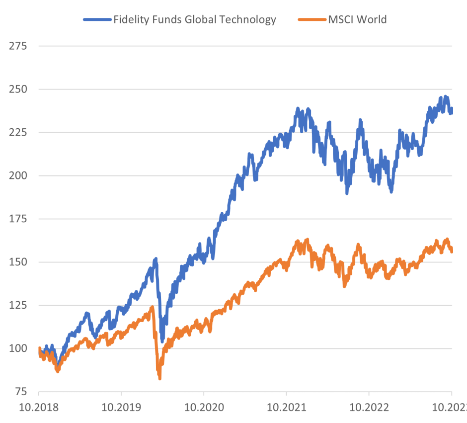 Unter Rendite-Risikogesichtspunkten gehört der Fidelity Funds Global Technology Fund zu den Top-Fonds seiner Peergroup.