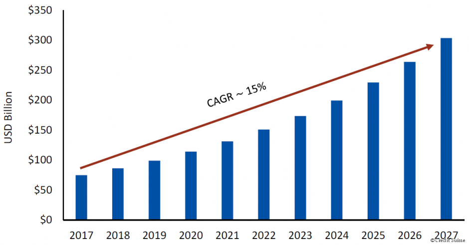 Abb. 1: Wachstum des globalen Markts für Cloud-Computing
