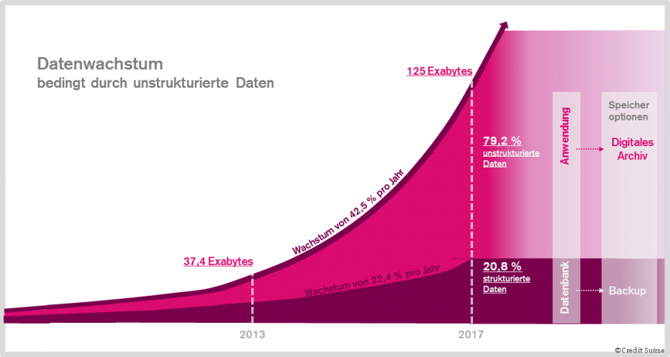 Abb. 2: Die Zunahme unstrukturierter Daten gegenüber dem Wachstum strukturierter Daten