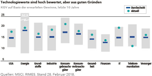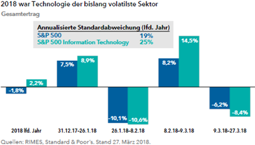 Jetzt, wo der Regulierungsdruck zunimmt und ein ernster Handelskonflikt mit China droht, fragen sich Investoren, ob die Bewertungen nicht ein zu hohes Wachstum unterstellen. Infolgedessen steigt die Marktvolatilität, mit Technologiewerten an der Spitze. Nach dem gescheiterten Fusionsversuch der beiden Chiphersteller Broadcom und Qualcomm wird immer öfter bezweifelt, dass grenzüberschreitende Fusionen gelingen können. Auch zweifelt man mehr und mehr an den Größenvorteilen marktbeherrschender Technologieplattformen.