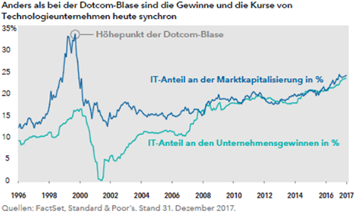 Sehr oft halte ich schwierige Phasen für Kaufgelegenheiten, auch wenn man bei jeder einzelnen Anlageentscheidung das Unternehmen selbst im Blick haben muss. Die Bewertungen sind im Technologiesektor immer ein Grund zur Sorge. Zurzeit scheinen sie mir aber keineswegs übertrieben. Sie sind weit von den massiven Übertreibungen in den späten 1990er-Jahren entfernt. Der große Unterschied zu damals ist, dass jetzt auch die Gewinne steigen.