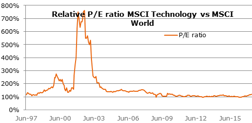 Das Gewinnwachstum im Technologiesektor war überdurchschnittlich hoch und wird in absehbarer Zukunft wahrscheinlich auch hoch bleiben. In den vergangenen zehn Jahren entwickelten sich Mobiltelefone von Geräten im Wert von 50 US-Dollar, mit denen man lediglich telefonieren und Nachrichten schreiben konnte, zu mobilen Supercomputern im Wert von 500 US-Dollar. Gesellschaft und Institutionen beginnen gerade erst, sich dieser neuen Wirklichkeit anzupassen. Zahlreiche Branchen wie z.B. Automobil, Einzelhandel und Gesundheit stehen vor einem neuen technologischen Durchdringungszyklus. Das Gewinnwachstum von Technologieunternehmen war besser als erwartet und hat damit zu steigenden Aktienkursen geführt. Der Anstieg der Kurs-Gewinn-Verhältnisse (KGV) verlief ungefähr im Takt mit dem Markt. Technologieaktien notieren nur mit einem leichten Aufschlag zum breiten Aktienmarkt und sind weit von den utopischen Niveaus der späten 1990er Jahre entfernt.