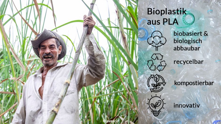 Ein großer Vorteil von PLA gegenüber herkömmlichen Kunststoffen: Nach dem Gebrauch kann dieser recycelt werden (allerdings nur in Industriekompostierungsanlagen unter bestimmten Temperatur-, Sauerstoff- und Feuchtigkeitsbedingungen). Zudem werden bei der Herstellung keine fossilen Ressourcen verbraucht, wie beispielsweise beim erdölbasierten Kunststoff PET. Somit verbraucht die Herstellung von PLA keine begrenzten Ressourcen und der CO2-Ausstoß ist sehr viel geringer. Bei der Verbrennung wird nämlich nur so viel CO2 freigesetzt, wie der pflanzliche Rohstoff zuvor gespeichert hatte. Daneben lässt sich die durch die Verbrennung gewonnene Energie für Strom und Wärme nutzen. PLA-Kunststoffe sind aus ökologischer Sicht also sehr viel nachhaltiger als erdölbasierte Kunststoffe.