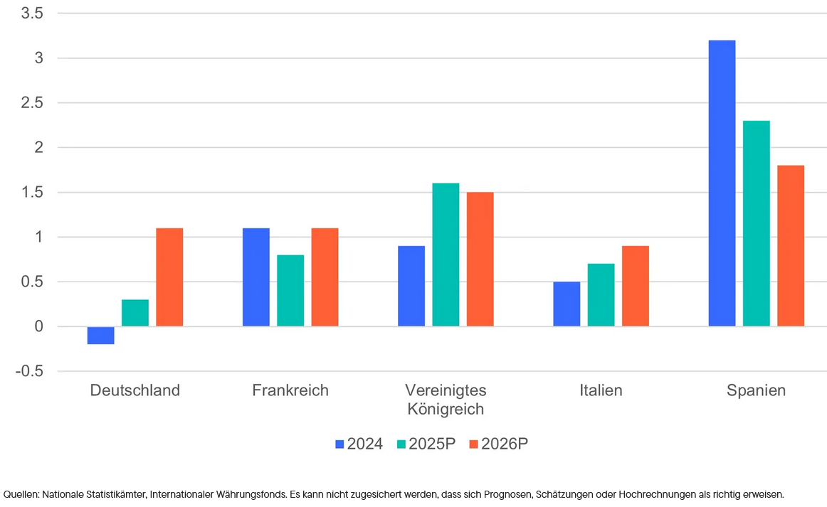 Eine Beschleunigung des Wachstums in Europas größter Volkswirtschaft wäre aus unserer Sicht für die gesamte Region und für die Aktienmärkte positiv, denn es würde die Bemühungen der Europäischen Union (EU) unterstützen, den Kontinent wettbewerbsfähiger zu machen und die Wirtschaftstätigkeit weiter zu steigern.