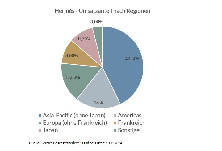 Hermès hingegen verzeichnete in allen Regionen weiteres Wachstum. Besonders beeindruckend legte Japan mit +22,8 % zu und auch Europa (ohne Frankreich) konnte ein starkes oW von 20,3 % erzielen. Amerika wuchs ebenso wie der Heimatmarkt Frankreich mit gut 13 %. Am schwächsten entwickelte sich der größte regionale Markt Asia-Pacific ex Japan, also im Wesentlichen das China-Geschäft, das mit einem oW von „nur“ 1 % wuchs. Diese Zahl mag auf den ersten Blick nicht besonders beeindruckend wirken; sie wird es aber dann, wenn man bedenkt, dass die Wettbewerber LVMH und Kering in China zum Teil dramatisch schrumpften. Wie sich das sehr gute oW auf die Profitabilität auswirkte, werden wir übrigens Anfang 2025 erfahren: Traditionell veröffentlichen die französischen Luxushersteller ihre Gewinne nur halbjährlich.