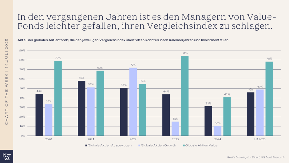· „In den ersten sechs Monaten des Jahres 2025 hat immerhin rund die Hälfte der Fonds ihre Benchmark vor Abzug der Kosten hinter sich gelassen – deutlich mehr als 2024.“