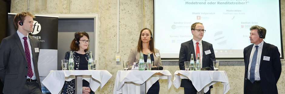In der Schlussrunde ziehen alle Beteiligten eine positive Bilanz zur Entwicklung. Auf Nachfrage aus dem Auditorium, ob denn tatsächlich zu beobachten sei, dass Unternehmen ihr Verhalten in Bezug auf Nachhaltigkeitskriterien ändern würden, bestätigten die Teilnehmer der Podiumsdiskussion ihre positiven Erfahrungen. Das Thema dringe zunehmend in alle Bereiche der Wirtschaft vor. Die Finanzindustrie sei zweifellos in einer Schlüsselposition, um ein allgemeines Umdenken hin zu mehr Verantwortung in vielen ESG-Themenbereichen zu bewirken.