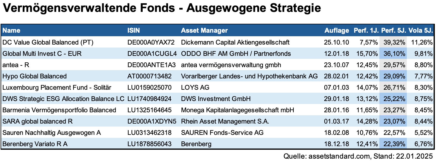In den vergangenen fünf Jahren haben sich verschiedene vermögensverwaltende Fonds in Deutschland hervorgetan, die Anlegern unterschiedliche Strategien und Renditen bieten. Die jeweils besten Fonds in den Kategorien Ausgewogen, Defensiv und Offensiv zeigen, dass es sich lohnt, einen genaueren Blick auf die verschiedenen Fonds zu werfen.