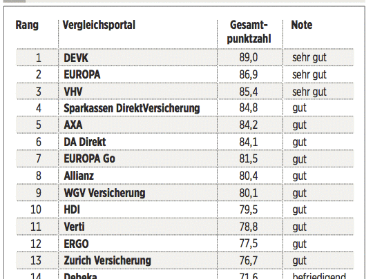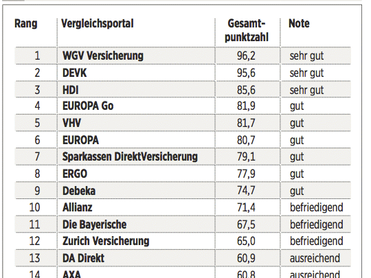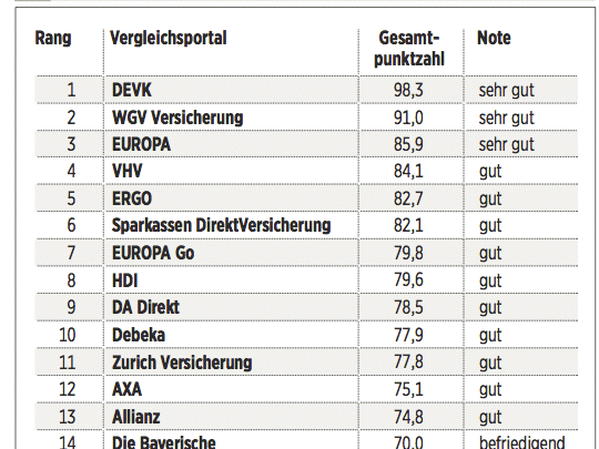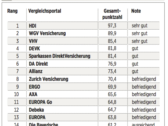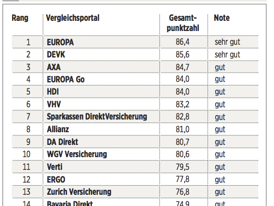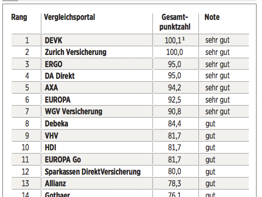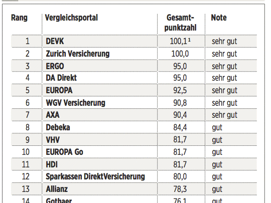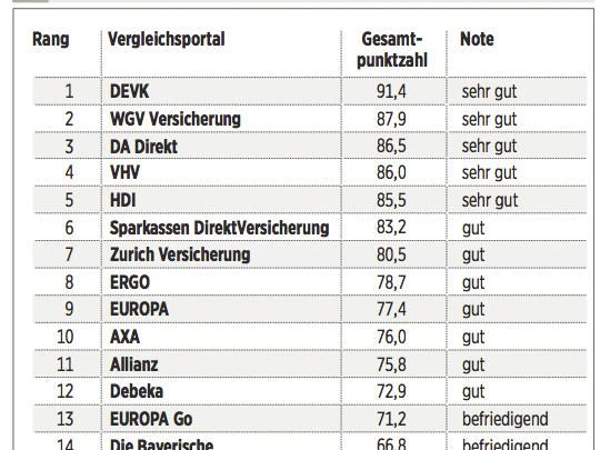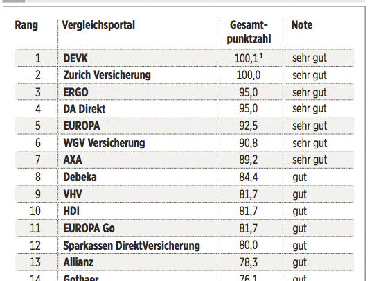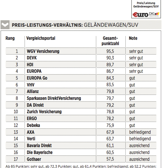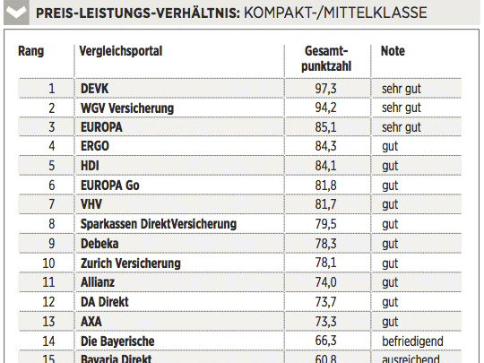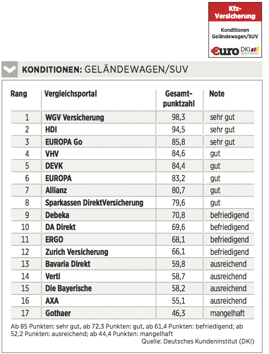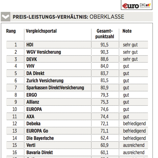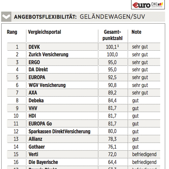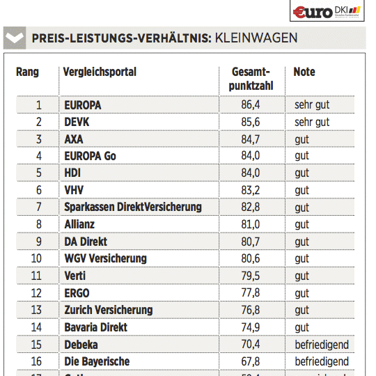 Das Deutsche Kundeninstitut (DKI) hat für €uro 17 Kfz-Versicherungen auf rund 435 Kriterien gecheckt. Das geschah erstens durch Befragen der Anbieter, zweitens mit Testanrufen und Test-E-Mails und drittens durch Analyse der Internetseiten. Testkategorien sind Konditionen (Gewicht: 50 Prozent), Angebotsflexibilität (30 Prozent) sowie Kundenservice (20 Prozent).