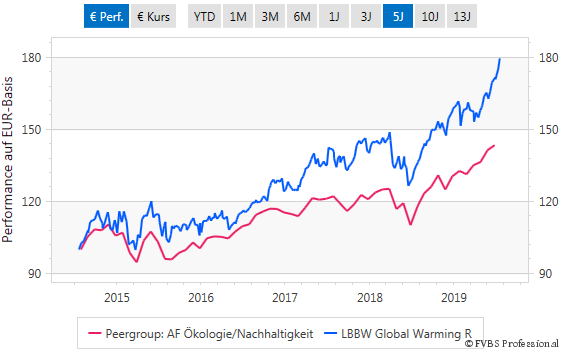 Etwas schwammig ist allerdings die Anlagepolitik des LBBW-Fonds unter dem Gesichtspunkt der Nachhaltigkeit. Nach eigener Aussage investiert der Fonds „überwiegend in Unternehmen, die Produkte oder Dienstleistungen anbieten, die der globalen Erderwärmung (Global Warming) entgegenwirken oder deren Folgen abmildern. Dabei investiert der Fonds überwiegend in ausgewählte Unternehmen aus den Bereichen Erneuerbare Energien, Versorger, Wasser, Bau, Anlagenbau, Versicherungen, Nahrungsmittel, Chemie, Erdgas sowie Forstwirtschaft“.