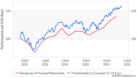 Dass es auch anders geht, zeigt der Threadneedle European Smaller Companies (ISIN: LU1864952335), der in Aktien kleiner und mittelgroßer europäischer Unternehmen investiert. Der Fonds steht bei Netfonds und Fondsdiscount in der Bestellerliste für Small- & Midcaps oben. Fonds Supermarkt kennt diese Einteilung in seiner Top-Liste nicht. Der Fonds wurde erst Ende Oktober 2018 aufgelegt – mitten in der Herbst-Baisse vor eineinhalb Jahren. Deshalb musste Fondsmanager Philip Dicken hinnehmen, dass sein Fonds vom Start weg in den ersten Wochen erst einmal heftig an Wert verlor.