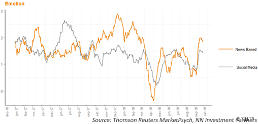 The fundamental news flow was mixed over the week. Chinese data was slightly weaker, but trade fears faded somewhat after the US and Canada made a deal to replace NAFTA. The most-watched news was Italy’s budget announcement. The M5-Lega coalition government agreed on a budget deficit equal to 2.4% of GDP. The announcement was not well-received by other European politicians and investors. The deficit would be in breach of EU rules, risking renewed Eurozone market stress and political upheaval. While the market impact on the directly related assets like BTPs and Italian/European financials is already sizeable, contagion to the rest of Eurozone periphery and other assets has been limited so far. To us, this means that the market risk is basically two-sided, and we don’t want to act on it yet.