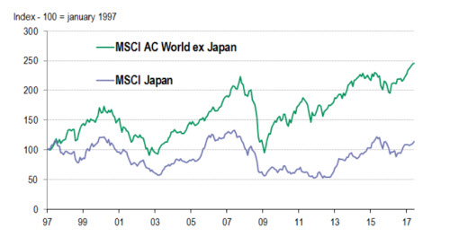 There are many reasons for the disappointing performance of Japan’s equity markets over the last 20 years, and of its fixed-income markets too. The spur for the initial poor performance was not the market bubble itself, but the delayed reaction to it.