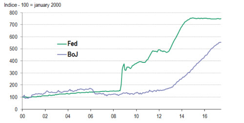 Exhibit 2: Total assets held by the Federal Reserve and the Bank of Japan