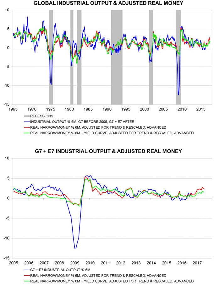 Global monetary growth remained strong in September, suggesting that the current upswing in economic momentum will be sustained through mid-2017 (at least), based on the historical average nine-month lead from money to output.