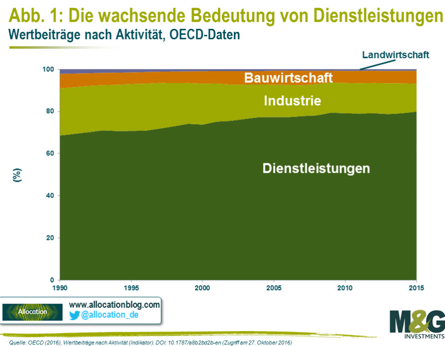 *Es sollte zwar erwähnt werden, dass der Prozentsatz des Wertbetrags durch die Finanz- und Versicherungsbranche laut OECD-Daten zwischen 1990 und 2015 (nur) von 5,5% auf 7,2% gewachsen ist und es sich dabei um das größte Wachstum der aller G7-Staaten handelt. Es ist jedoch immer noch niedriger als die Zuwächse in Australien sowie China und ganz zu schweigen von Luxemburg und der Schweiz.