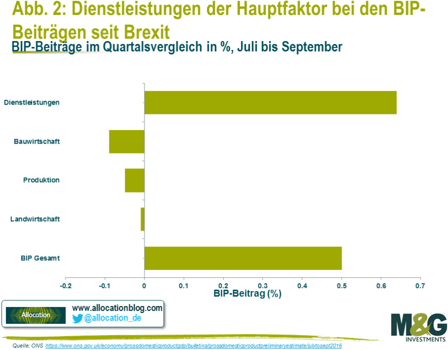 Parallelen mit dem Brexit-Votum im Jahr 2016 hängen sicherlich von der politischen Sichtweise ab, doch lassen wir diese nun außen vor und werfen stattdessen einen Blick auf die heute veröffentlichten, ersten BIP-Zahlen für ein volles Quartal seit dem Referendum. In ihnen zeigt sich die Bedeutung von Dienstleistungen für die heutige Volkswirtschaft, denn die positive Wachstumsüberraschung ging alleine auf das Konto des Servicesektors.