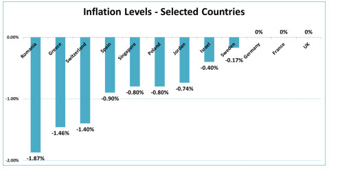 To round up this inflation blog, I also looked up the countries with the lowest levels of inflation. The results are in the table below. Interestingly, five out of the top six countries, and nine of total sample of twelve countries are European. Perhaps low inflation is a European thing? The table also shows that 'only' nine countries actually have inflation levels below zero. That fits the notion that we currently live in a world of lowflation, and not necessarily deflation.