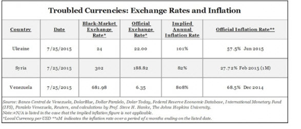 Now, I immediately admit, there are countries that have higher inflation rates. Just take a look at the table below (taken from this Forbes article), which shows three countries even higher inflation. But I think it's fair to say that these countries are (each) in a league of their own. Syria and Ukraine are at ware and Venezuela is the most recent example of a country trapped in hyperinflation, with an estimated level of inflation of 808%!