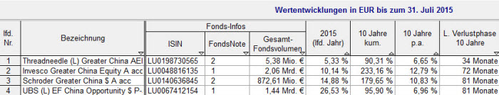Eine Liste interessanter China-Aktienfonds sehen Sie in der FundResearch-Grafik.
