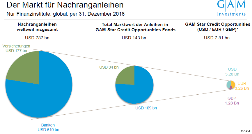 Es sei zudem eine günstige Anlageklasse, erklärt Ralph Gasser. Europa sei noch einmal günstiger als USA. Denn in den USA seien die Kernkapitalquoten im Vergleich zu Europa niedrig, erklärt der Anleiheexperte. Gasser sagt, dass der Fonds GAM Star Credit Opportunities mit seinem besonderen Rendite-Risikoprofil geeignet ist, ein ausgewogenes Anleger-Portfolio gut zu ergänzen. Das Fondsmanagement kauft im Primärmarkt und handelt während der Laufzeiten der Anleihen so wenig wie möglich. Dabei ist der Fonds zu 80 Prozent in Nachranganleihen von Finanzinstituten investiert.