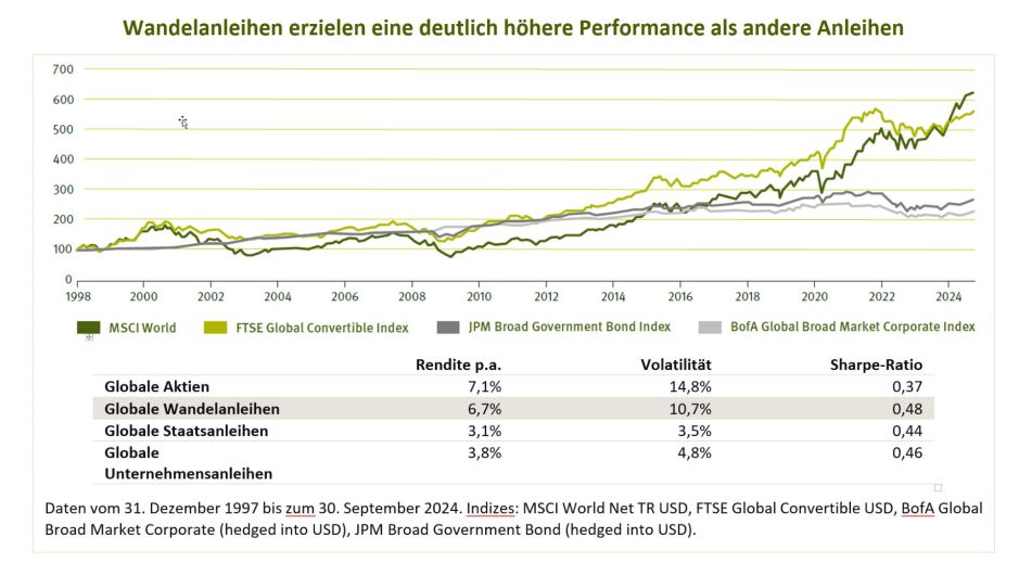 Einen Vorgeschmack auf die nächsten Monate gibt die bisherige Entwicklung seit Anfang 2024: Globale Investment-Grade-Wandelanleihen gehören zu den wenigen festverzinslichen Strategien, die von Jahresbeginn bis Ende September zweistellige Renditen erzielt haben (+10,6%).