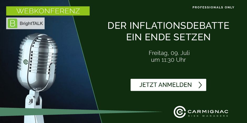 Marktrisiken und -chancen für das zweite Semester werden deutlicher, trotz Inflationsdebatte. Um mehr zu erfahren, hören Sie sich unsere nächste BrightTalk-Konferenz an, zum Thema: Globale, makroökonomische Sicht auf die Märkte sowie deren Umsetzung im Fonds Carmignac Patrimoine.